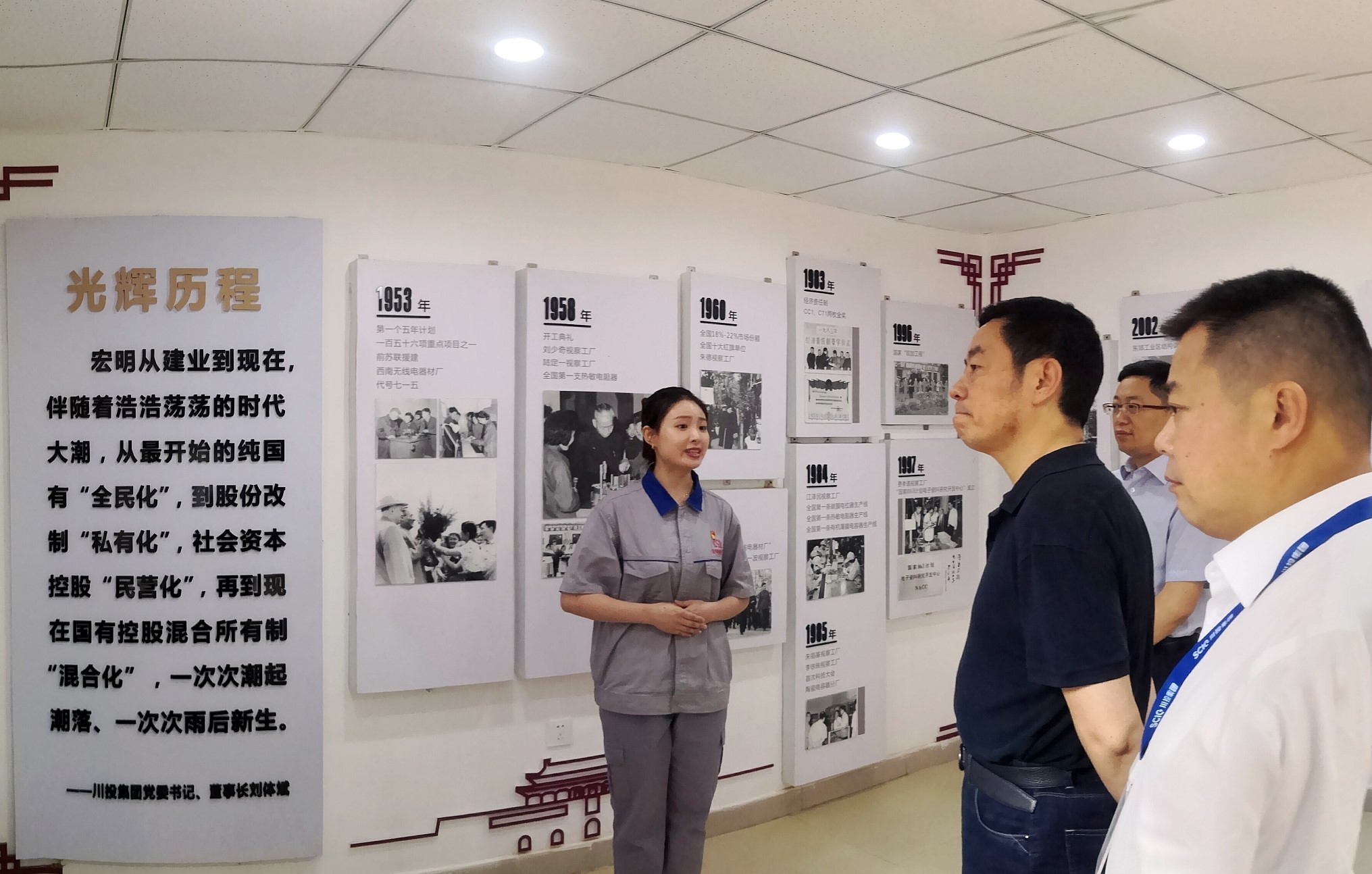 629日,川投集团党委副书记、董事邓凯赴宏明电子(国营七一五厂)调研川投信产“宏明记忆”党性教育基地,川投集团党群工作部部长张碧波,川投信产集团党支部书记、董事长、总经理王波等陪同调研。
