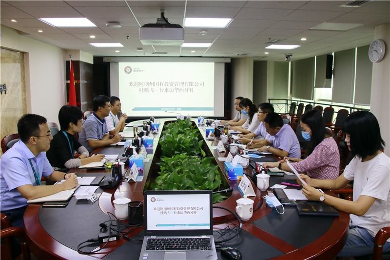 8月19日,集团公司党委委员、副总经理兼华西牙科党委书记、董事长罗永平在华西牙科公司会见阿坝州国有投资管理有限公司(以下简称阿坝州国投公司)副总经理杜鹏飞一行。