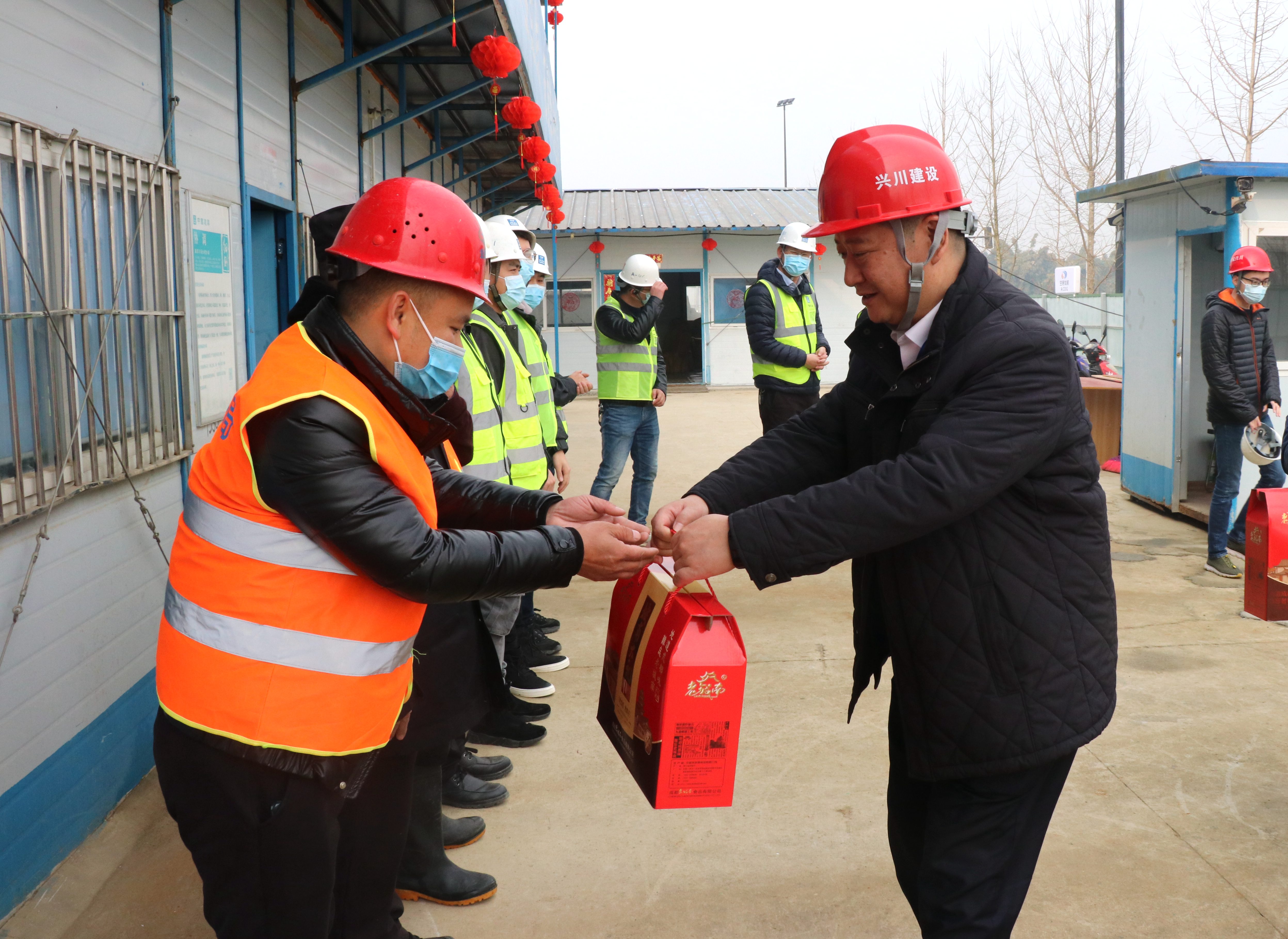 怡心湖项目现场,黄劲充分肯定了项目建设一线员工的辛勤劳动和无私奉献,为他们送上新春祝福,发放节日慰问品。