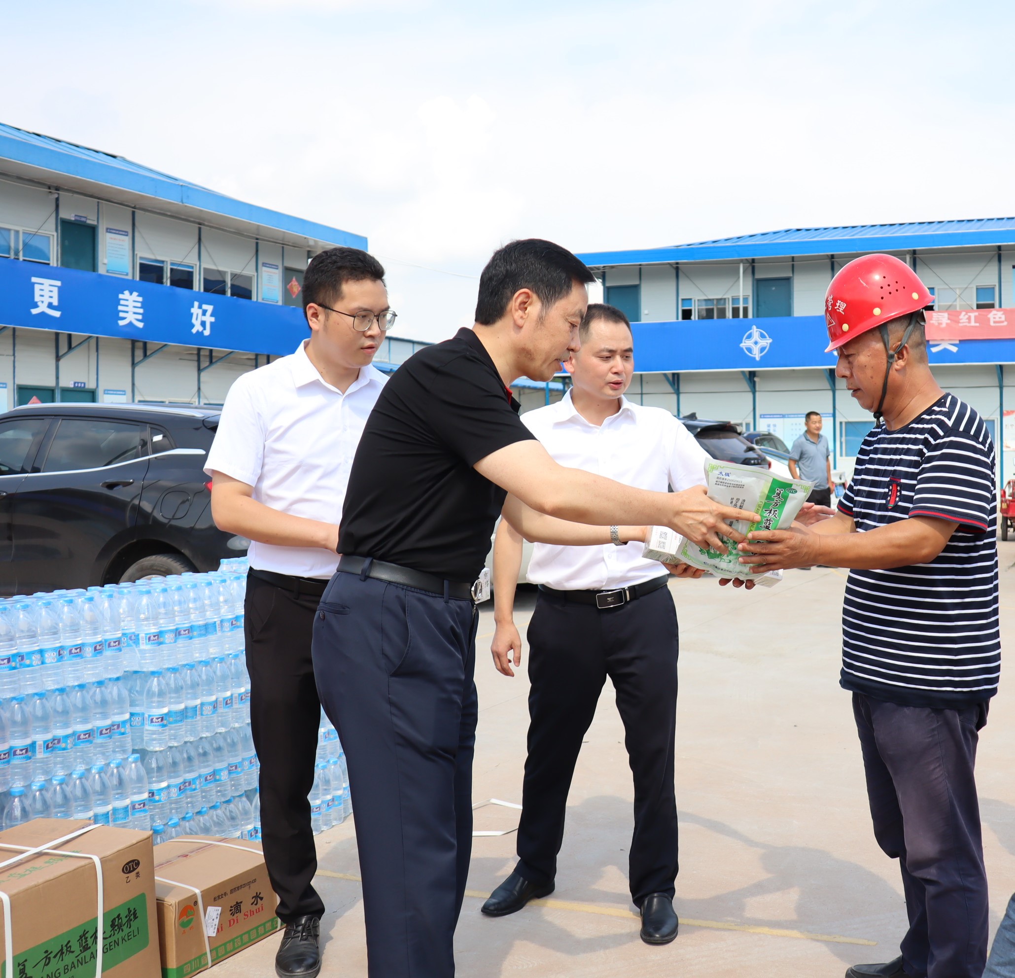 邓凯一行深入中国牙谷项目施工现场和资阳口腔职业学院,代表集团公司对在高温下坚守一线的施工人员、教职员工表示了亲切的关怀和慰问,将消暑物资送到大家手中,提醒大家做好防暑降温措施,在保障安全的前提下开展施工管理和学院运行管理工作