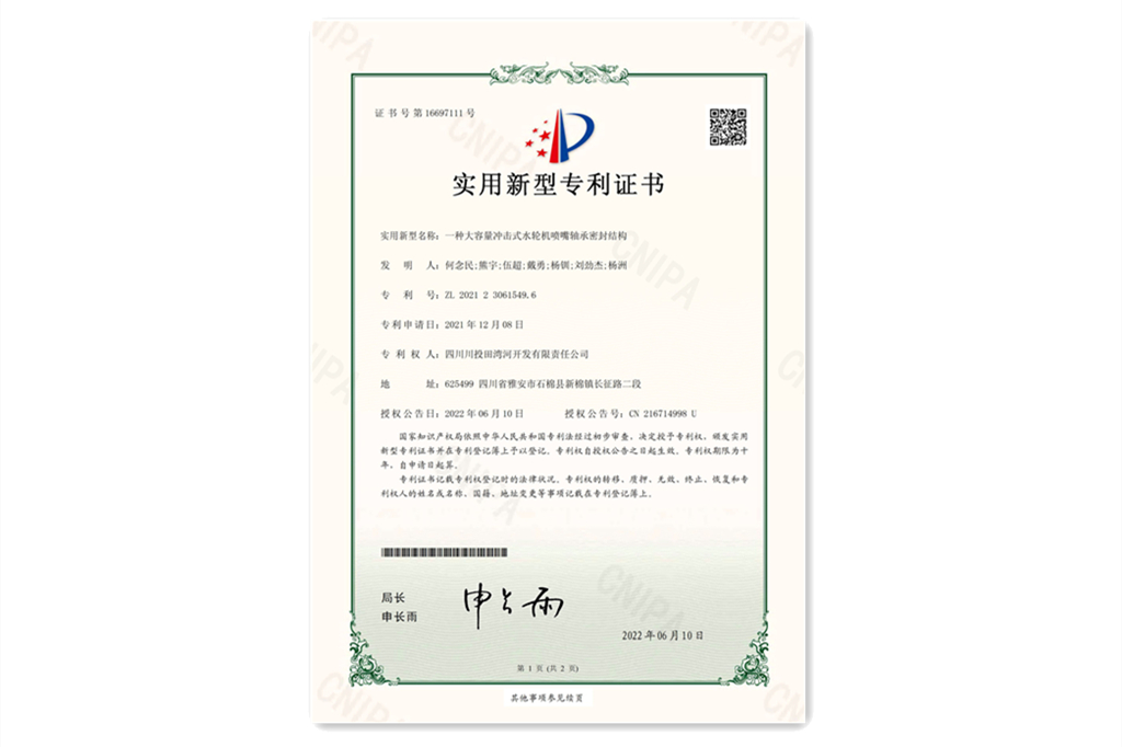 1月,以田湾河公司为主申报的《大型冲击式水轮机新型喷针关键技术研究及应用》科技成果荣获2021年四川水力发电科学技术奖一等奖。