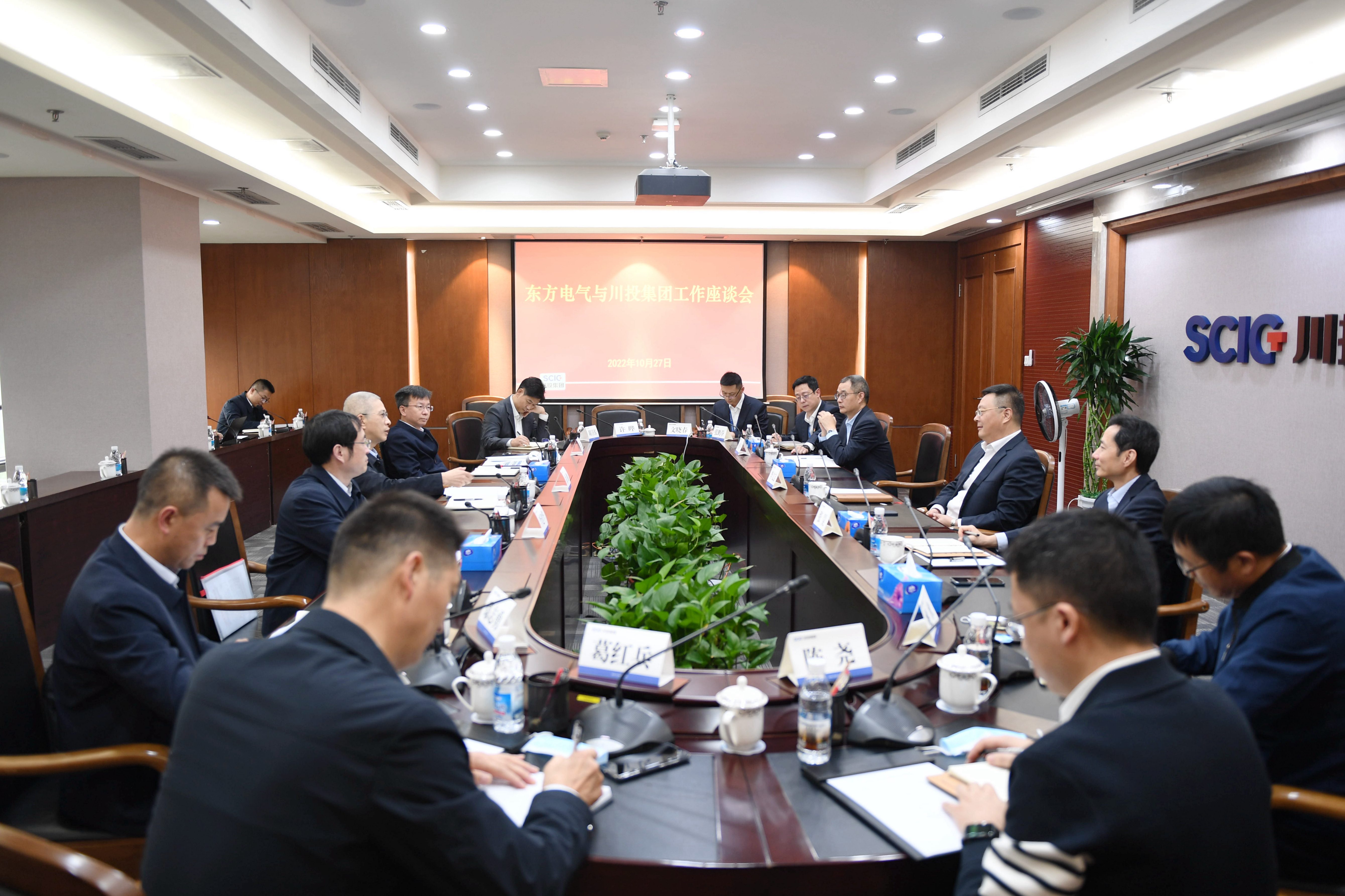 10月27日,中国东方电气集团有限公司(以下简称东方电气集团)总经理、党组副书记徐鹏一行到访川投集团。集团公司党委副书记、副董事长、总经理李文志主持会议。