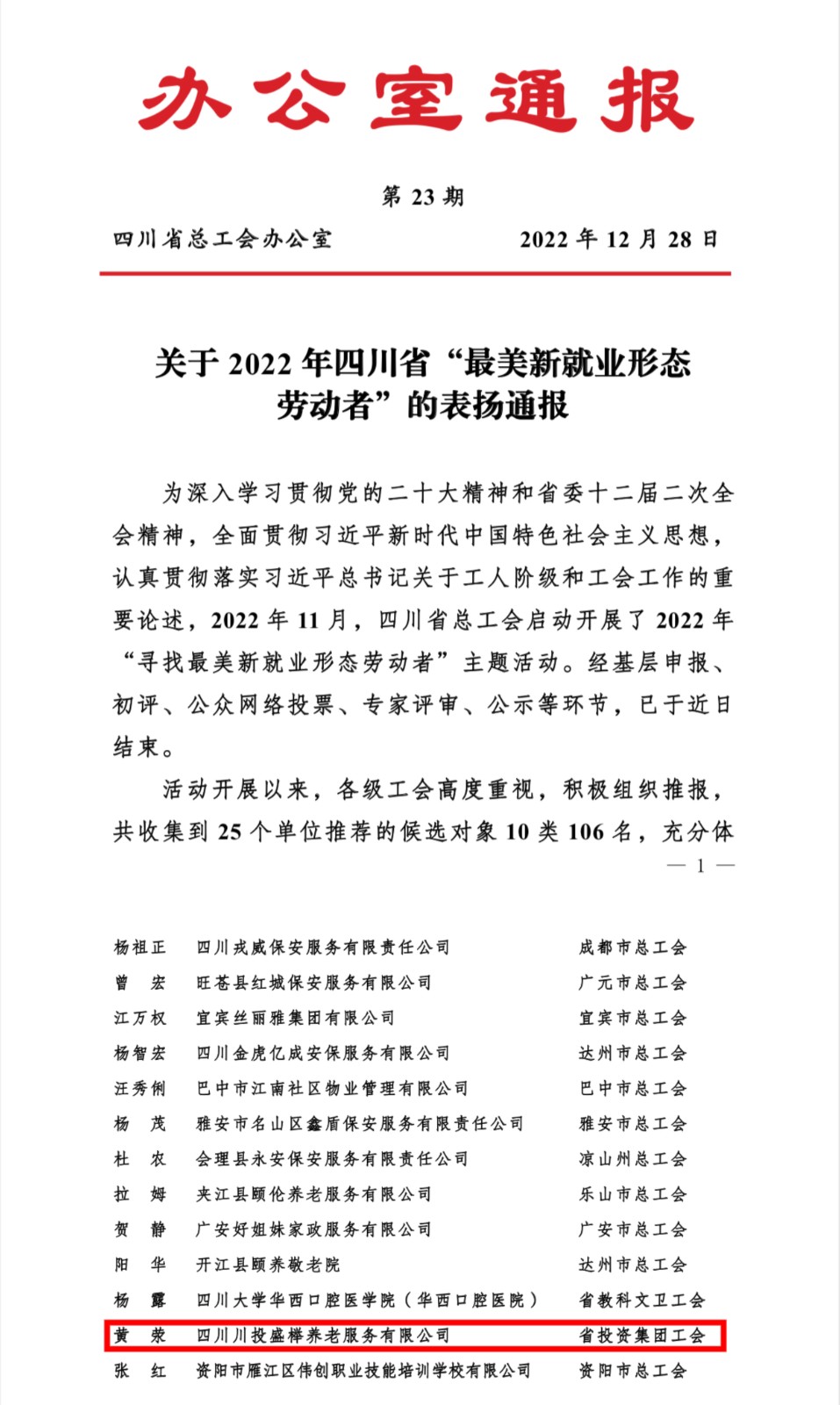 近日,四川省总工会印发《关于命名四川省职工“五小”活动先进集体和优秀成果的决定》《关于2022 年四川省“最美新就业形态劳动者”的表扬通报》,川投集团均榜上有名,喜获表彰!