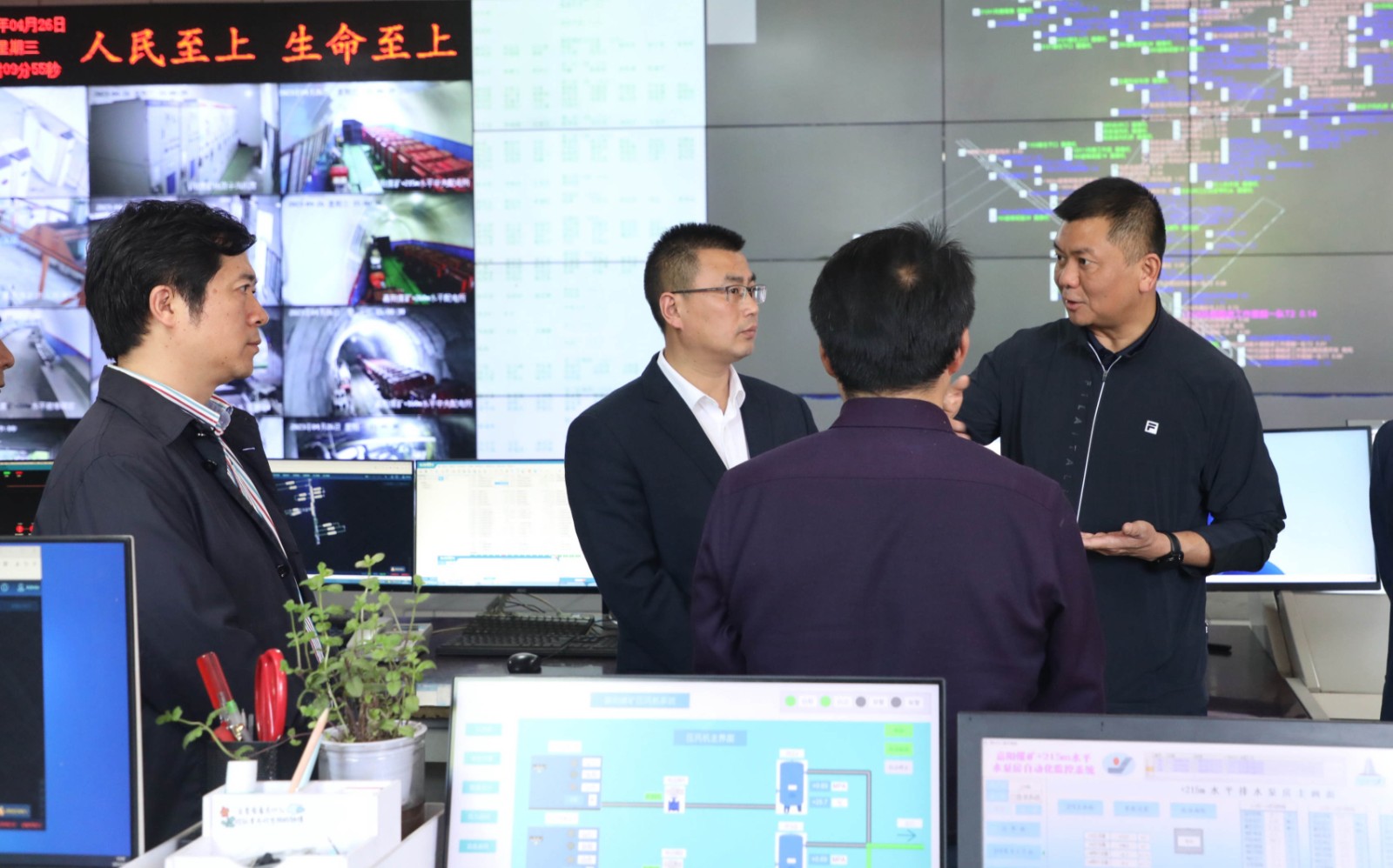 张德平一行走进嘉阳煤矿调度中心,详细了解煤矿井下作业、人员定位追踪、预警应急疏散、近期安全生产等相关情况,强调企业上下要深入学习贯彻习近平总书记有关安全生产重要论述和重要指示批示以及省市各级专题工作会会议精神,高度重视安全生产和应急管理各项工作,把安全放在首位,落实主体责任,不断完善制度,做好监督管控,关注职工状态,建立人员责任和问题整改清单,逐一整改落实到位。