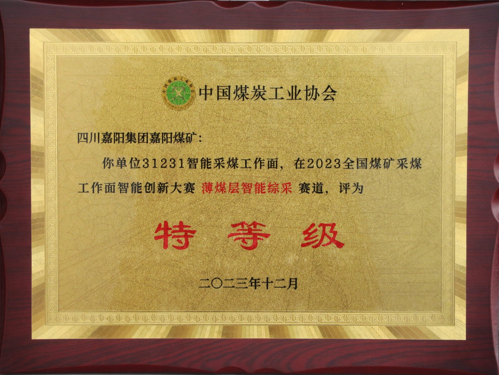 近日,嘉阳集团嘉阳煤矿天锡井31231智能化综采工作面在2023全国煤矿采煤工作面智能创新大赛中荣获薄煤层智能综采赛道“特等级”奖,这是中国煤炭工业协会对该矿智能化综采高质量建设的褒奖,该矿坚定不移走“机械化换人、自动化减人、智能化增效”道路,进一步提升了矿井安全生产保障力和能源保供能力。