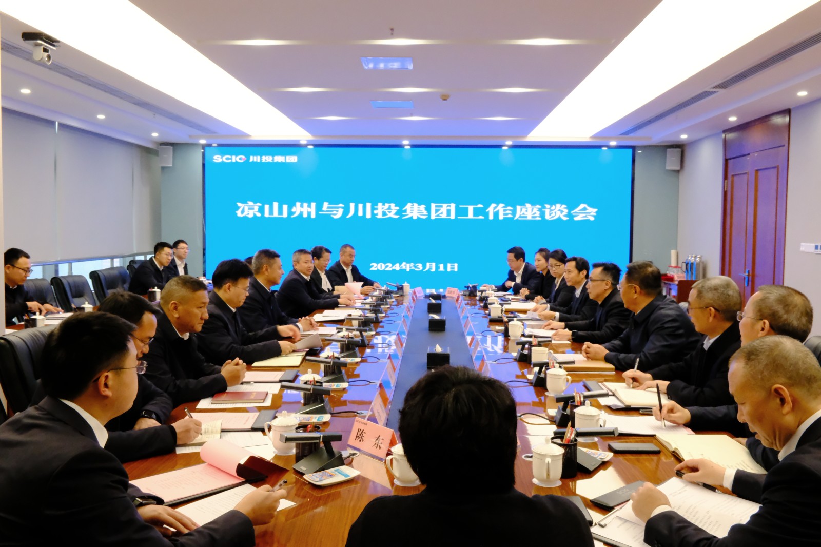 3月1日,川投集团与凉山州在川投大厦举行工作座谈会。凉山州委书记虞平出席会议,集团公司党委书记、董事长吴晓曦出席并主持会议。凉山州委副书记、州长阿石拉比,集团公司党委副书记、副董事长、总经理李文志参加会议。