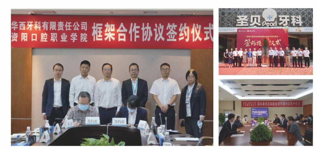 学院积极贯彻“产教融合、校企合作”的现代职教理念,目前,校企、校医合作单位达120家(42家医院、78家企业)。与多家知名企业开展订单培养及专业共建,建立了可丽尔、爱特佳等6个订单班,2个国际康养班。2023年12月,学院牵头成立了资阳市“中国牙谷”市域产教联合体,并作为常务副会长单位联合46家企业以服务产业创新发展为目标,构建产教融合多元主体共建模式。