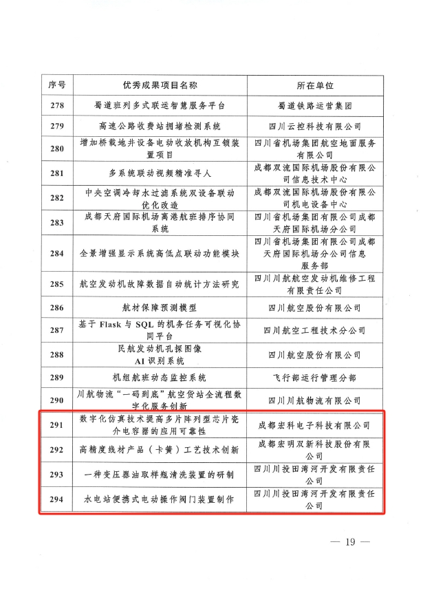 近日,四川省总工会印发《关于四川省职工“五小”活动优秀创新成果的通报》,川投集团所属川投信产《数字化仿真技术提高多片阵列型芯片瓷介电容器的应用可靠性》《高精度线材产品(卡簧)工艺技术创新》、川投田湾河《一种变压器油取样瓶清洗装置的研制》《水电站便携式电动操作阀门装置制作》共4项成果榜上有名。