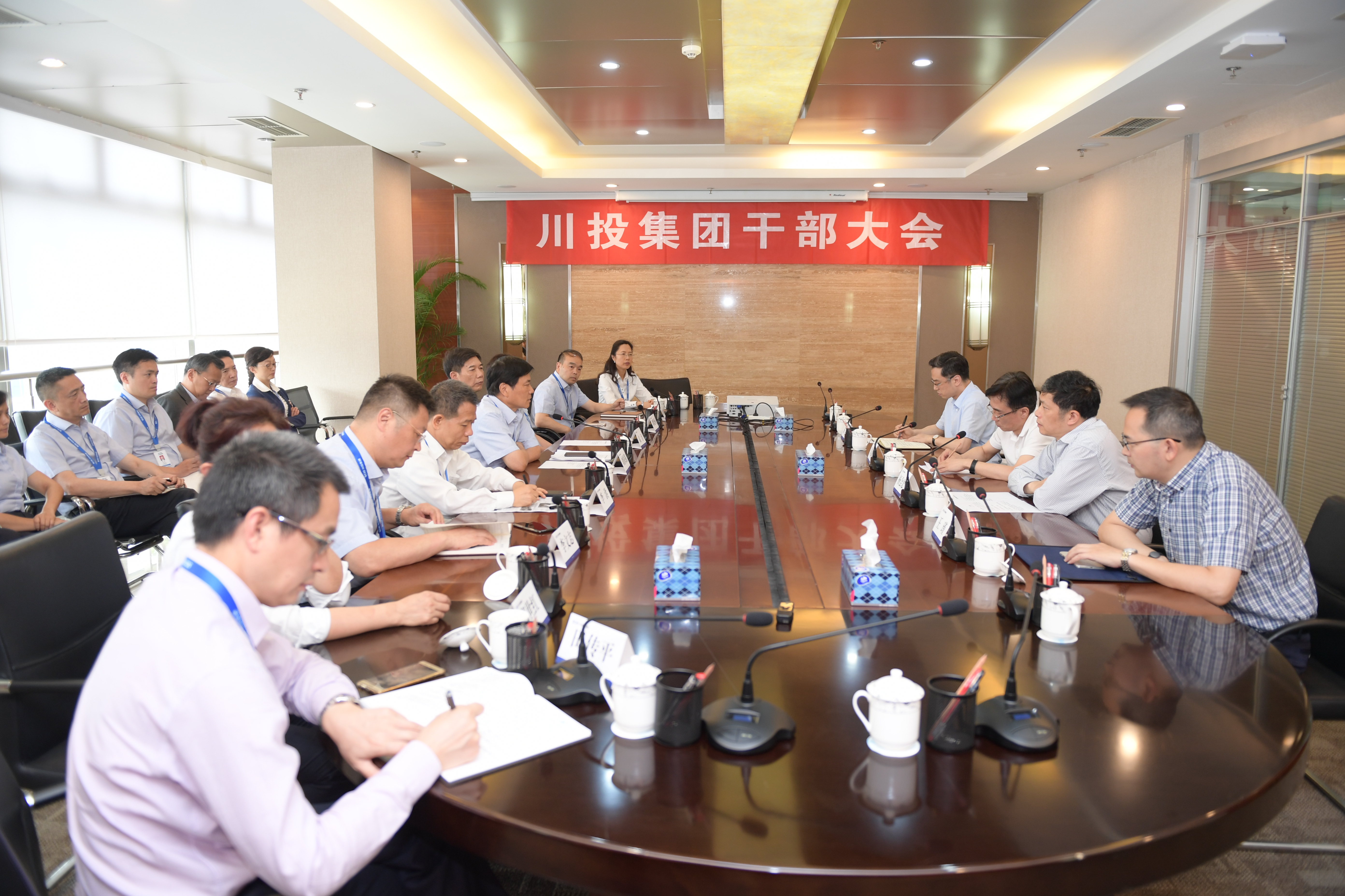 5月18日上午,川投集团干部大会在锦江国际大厦2311会议室召开,省国资委党委专职副书记吴晓曦、省国资委副巡视员、领导人员管理处处长杨会思出席会议,集团公司班子成员、部门负责人及在蓉企业主要负责人共计30余人参加会议。
