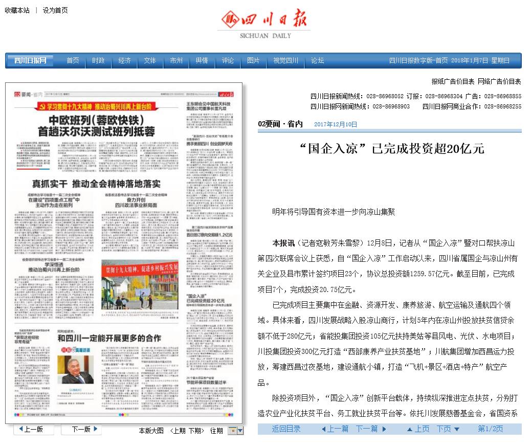本报讯(记者寇敏芳朱雪黎)12月8日,记者从“国企入凉”暨对口帮扶凉山第四次联席会议上获悉,自“国企入凉”工作启动以来,四川省属国企与凉山州有关企业及县市累计签约项目23个,协议总投资额1259.57亿元。截至目前,已完成项目7个,完成投资20.75亿元。