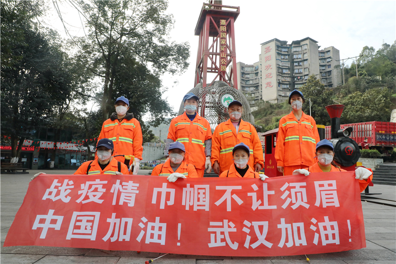 嘉阳集团综合服务公司承担绿化工作的8名女职工从矿区“美容师”转为抗疫“先锋队”,身负50斤的消毒装备“临阵上岗”,任劳任怨。