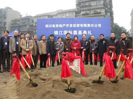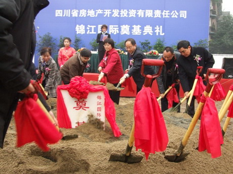 2006年12月30日下午2点整,四川省房地产开发投资有限责任公司和四川宏凌实业有限公司联合开发的“锦江国际”项目奠基仪式在“锦江国际”工地现场举行。川投集团副总经理、三产部经理梅林、副经理薛波、房地产公司总经理王建、副总经理唐洪昌、蔡昌银、四川宏凌公司董事长罗小林、总经理冉卫东、总工程师敬廷平及房地产公司和南河分公司全体员工、工程监理单位、基础施工单位等共同参加了该项目的工程奠基仪式。