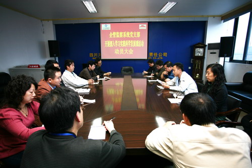 为确保学习实践活动取得扎实成效,公司领导穆婷云、彭少奇、唐华应、刘琼华等分别到定点联系的党支部进行了宣讲指导,开展调查研究。各党支部都研究拿出了具体的保证措施,由支部书记担任本单位学习实践科学发展观活动第一责任人,具体负责抓好单位学习实践试点工作;其他班子成员根据分工,抓好职责范围内的工作,为学习实践活动的顺利实施提供了坚强有力的组织领导保证。公司各单位还注重统筹协调,科学安排工作,妥善处理工学矛盾,把学习实践活动与完成年度各项任务、与当前的形势教育、与加强基层党的建设和做好维护稳定工作紧密结合起来,努力做到两手抓、两不误、两促进。
