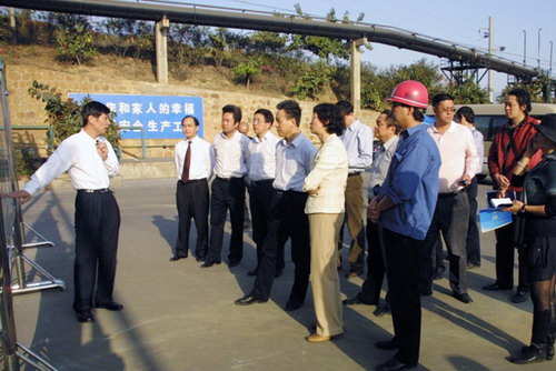 魏宏等一行,在公司副总经理王少甫、张建强,总工程师侯永胜等人陪同下,先后深入黄磷罐区、成品堆场、黄磷尾气净化及综合利用项目现场视察,了解公司生产、销售、经营等情况,并听取了副总经理王少甫的汇报。09年度,公司将在第一期5000Nm3/h黄磷尾气净化装置取得成功的基础上,根据不同产品对气体质量的不同要求发展下延产品。首先是发展甲醇、二甲醚、甲酸等下延产品,其次是就近落地,将净化后的多余尾气卖给园区内的企业做燃料使用。项目投产后,预计年可节约烟煤6万吨,减排CO1.4~1.8亿Nm3,减排CO225~27万吨,增加销售收入4320万元。