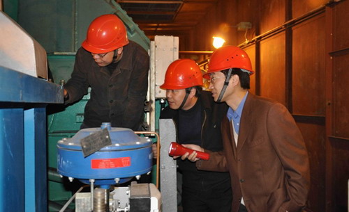 3月10日,川南发电公司总经理李胜章(右)率安全监察部、发电部负责人在现场检查设备运行情况,拉开了2009年度春季安全大检查的序幕。本次春季安全大检查为期2个月,预计4月10日结束,以查组织领导、查思想、查管理、查规章制度贯彻执行情况、查安全隐患为重点内容,将进一步夯实安全生产基础,促进公司安全生产工作。(姜波)
