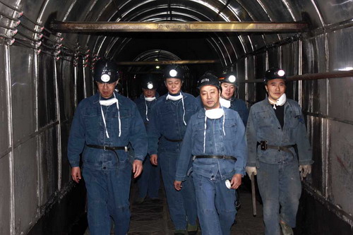 坐上260水平人车,询问矿工生活和工作,了解上下班情况;走进3110机道,在移动救生舱前察看,在档车栏前瞅瞅,在压风自救装置前驻足;到达采煤工作面,看一看高档普采的情况、揕一揕液压支柱是否结实、比量一下工作面巷道的高低,郭主席一边看一边了解。