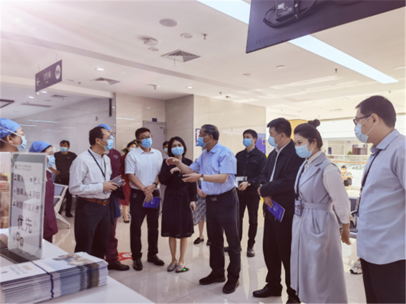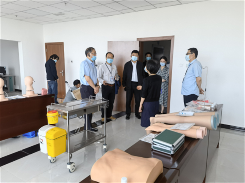 张中伟一行在医院党委书记徐知非的陪同下,参观考察了新院区的名中医馆、康复治疗中心、口腔治疗中心和实践教学中心等地。