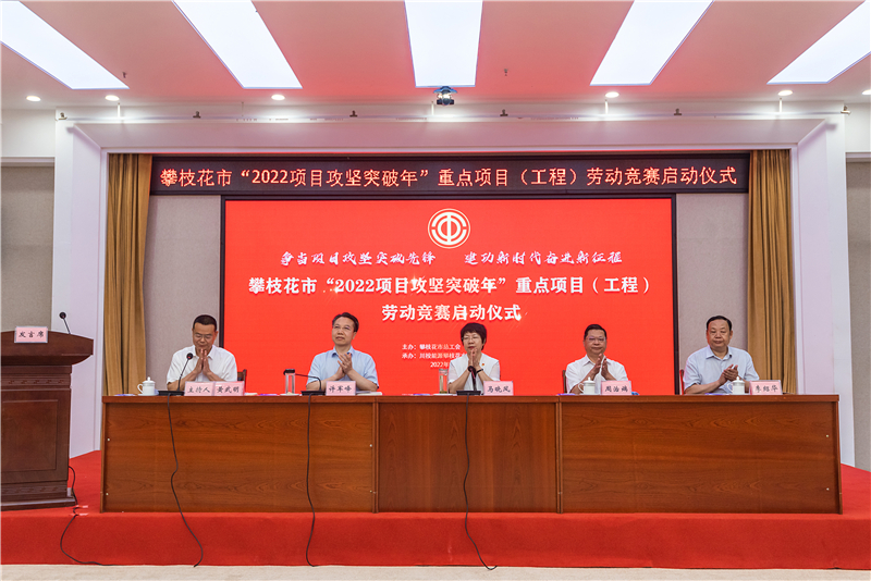 5月11日,由攀枝花市总工会主办、攀水电公司承办的攀枝花市“2022项目攻坚突破年”重点项目(工程)劳动竞赛启动仪式在攀枝花市会展中心举行,攀枝花市委常委、统战部部长、市总工会主席马晓凤出席启动仪式并宣布劳动竞赛正式启动。市人大常委会副主任周治端、副市长许军峰、市政协副主席李绍华出席启动仪式,川投能源副总经理、攀水电公司党总支书记、董事长徐孝刚代表全市50家重点项目(工程)发出倡议。