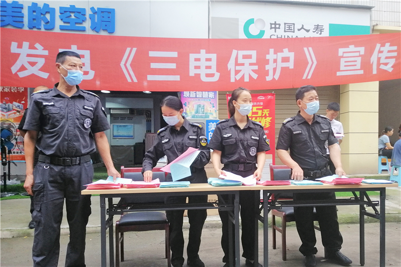 近日,川南发电联合驻地派出所在江北镇开展“三电”设施保护宣传,进一步动员社会各界及广大群众主动参与“三电”设施安全保护工作。