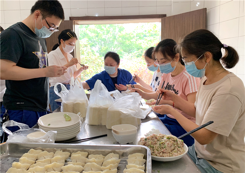 早上七点半,志愿者们已经在职工食堂备餐,他们整理新鲜的蔬菜、清洗蔬菜、给南瓜削皮,有厨艺负责切菜,大家合理分工、高效协作,个个充满干劲,每天早上7:30开始直到10:00左右。9月12日,志愿者们还一起为公司全体职工包了饺子,许多职工群众也自发的来到职工食堂帮忙。