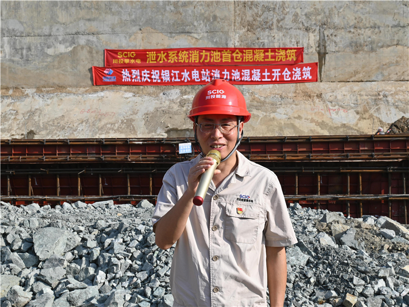 “现在我宣布泄水系统首仓混凝土浇筑正式开始”,9月29日下午,在川投能源副总经理、公司党总支书记、董事长徐孝刚的一声指令下,银江水电站泄水系统首仓混凝土正式开始浇筑,标志着主体工程施工由开挖逐步转入混凝土浇筑阶段。