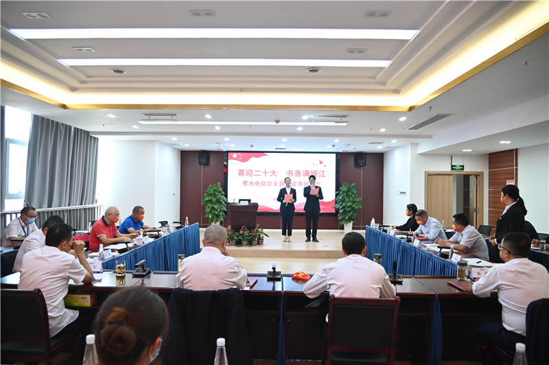 日前,为庆祝党的二十大胜利召开,鼓励全体党员、职工学党史、强信念,同心建功新时代,踔厉奋进新征程,攀水电党总支组织开展了“喜迎二十大、书香满银江”读书心得分享活动。川投能源副总经理、 攀水电公司党总支书记、董事长、攀新能源公司董事长徐孝刚以及公司在攀领导、长江设计、水电五局、水电七局、二滩建设项目部等主要领导参加活动并担任评委。