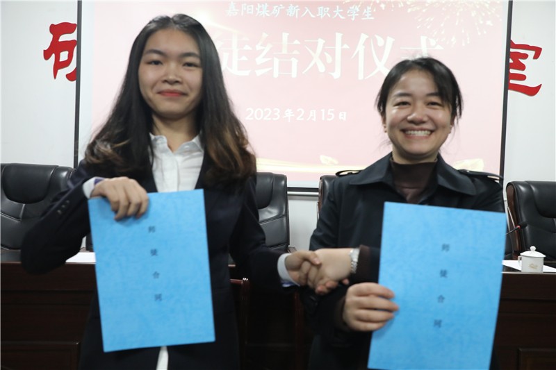 师徒代表分别作交流发言。大学生代表刘芮婷表示:将尊师重教虚心学习,奋发进取,一定不辜负领导和师傅的厚望,立足自身岗位,贡献青春力量。师傅代表潘刚表示:在今后的工作中,一定毫无保留地把自己多年积累的工作经验、岗位技能传授给徒弟,帮助他们成长成才,希望在成为师父之后,与弟子携手前进,互相学习、共同进步,一起收获成长的喜悦。10位新进大学生与嘉阳煤矿相关职能部门、队站专业技术骨干正式签订师徒合同,确定目标任务,并作出庄严的安全承诺。