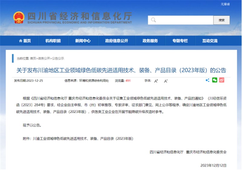 近日,四川省经济和信息化厅、重庆市经济和信息化委员会联合发布了《川渝工业领域绿色低碳先进适用技术、装备、产品目录(2023年版)》(以下简称:《目录》),公司所属天府研究院的天府双碳大数据联合实验室碳足迹生命周期评价数据库/碳足迹及碳盘查服务平台成功入选,是唯一入选的企业碳核算及碳管理服务平台。