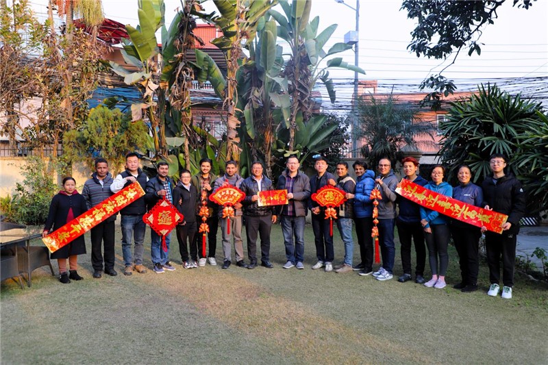 工作之余,前方团队组织员工在除夕包饺子、看春晚,观看“贺岁杯”中尼友谊足球赛、尼泊尔中国春节庙会、尼泊尔舞麒麟舞龙舞狮巡游等中国大使馆及中资企业协会等联合举办的系列春节活动,共同度过一个欢乐祥和的幸福年。