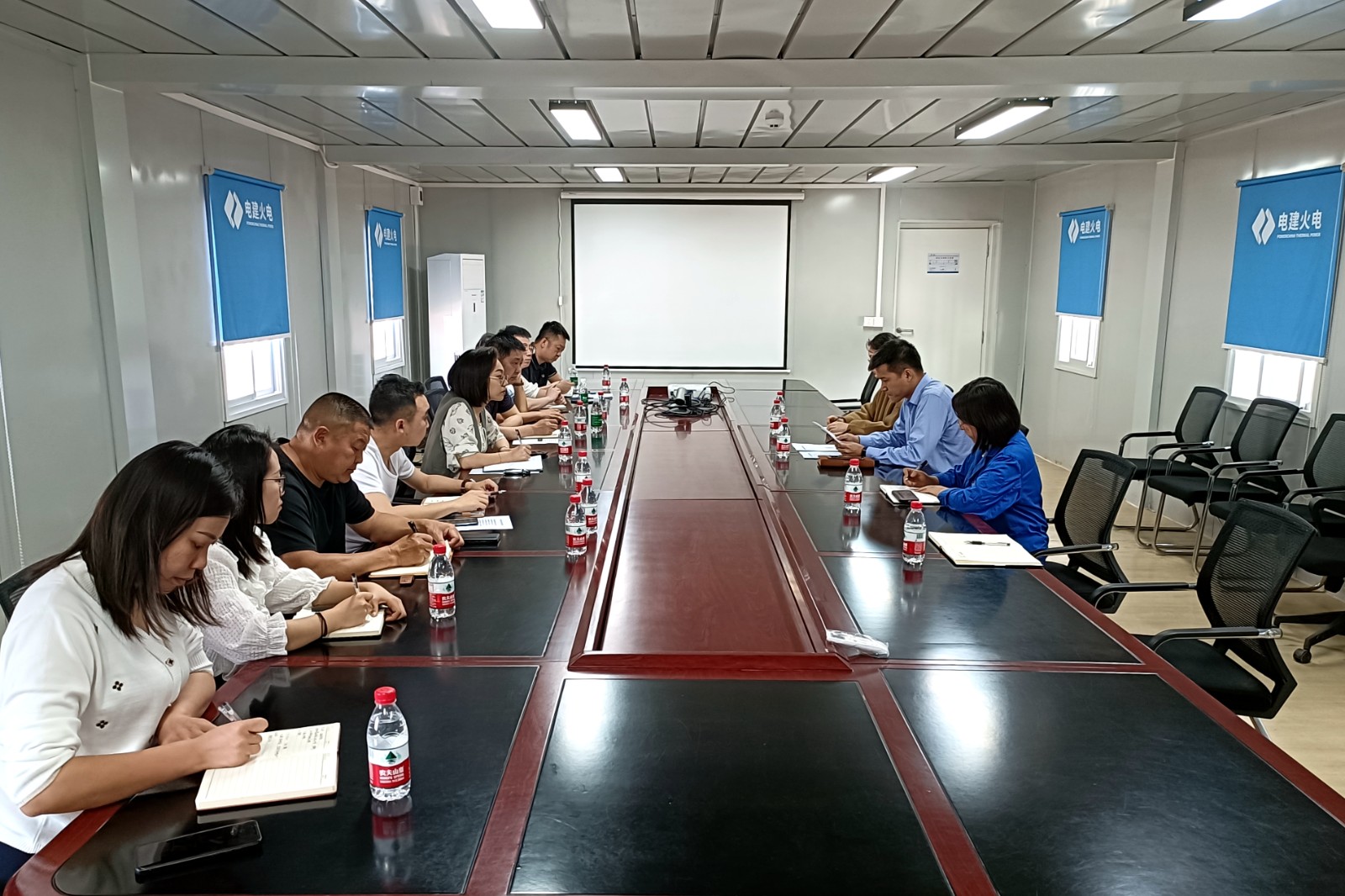 李驰宇一行在项目临建办公区与泸州气电、山东电力建设第三工程有限公司川投泸州天然气发电项目部相关业务负责人进行了交流座谈。座谈会上,泸州气电和项目部财务部门负责人向李驰宇一行汇报了项目推进情况和涉及相关税费缴纳等情况,表示将继续全力配合税务部门工作,同时希望为企业争取更多的税收优惠政策落地