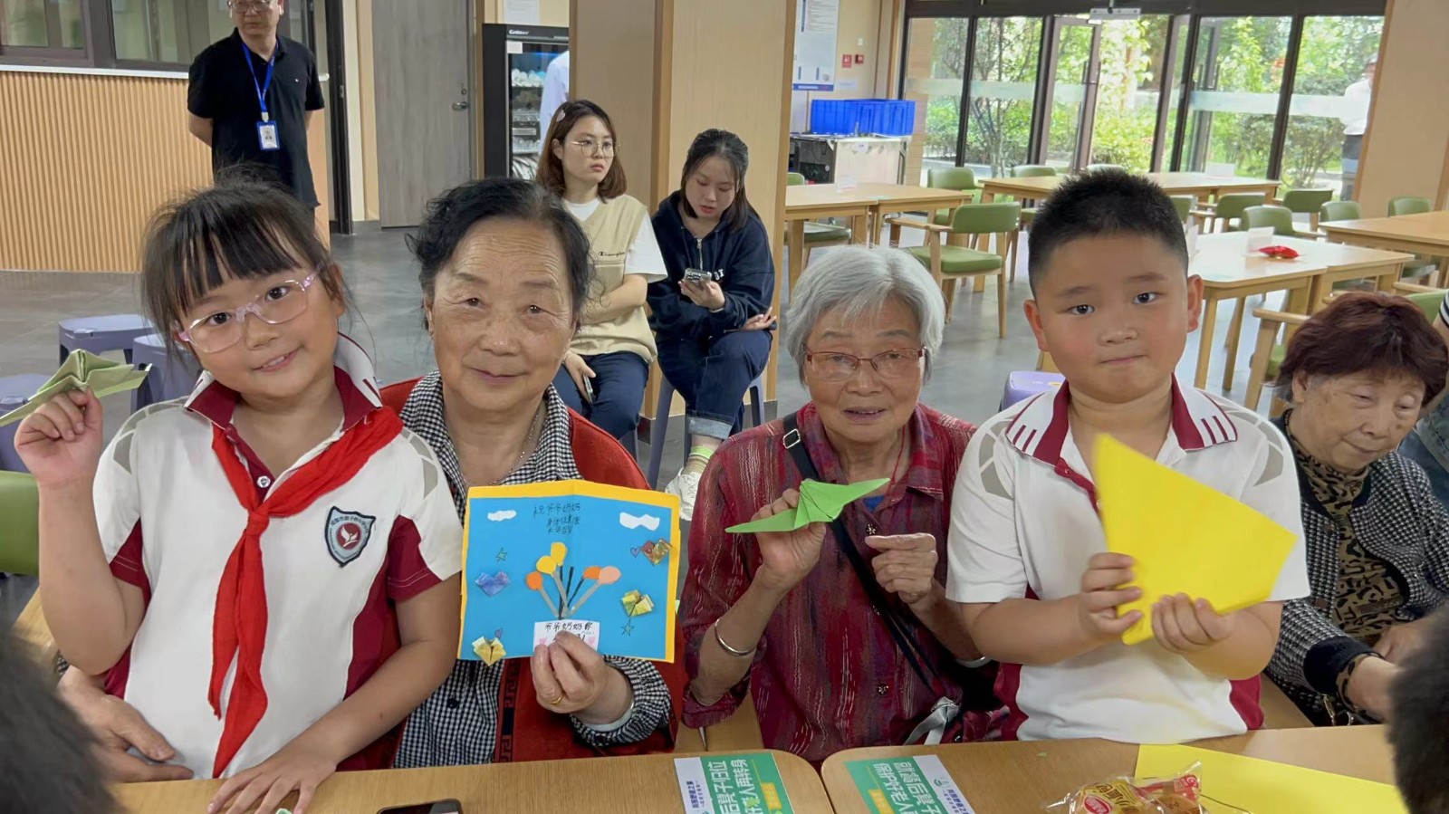 随后小朋友们与长者们共同度过了一场温馨的生日会小朋友们为长者献唱生日歌,并送上精心准备的礼物和祝福长者们笑容灿烂,小朋友们乐在其中,活动现场一片温馨祥和的景象。