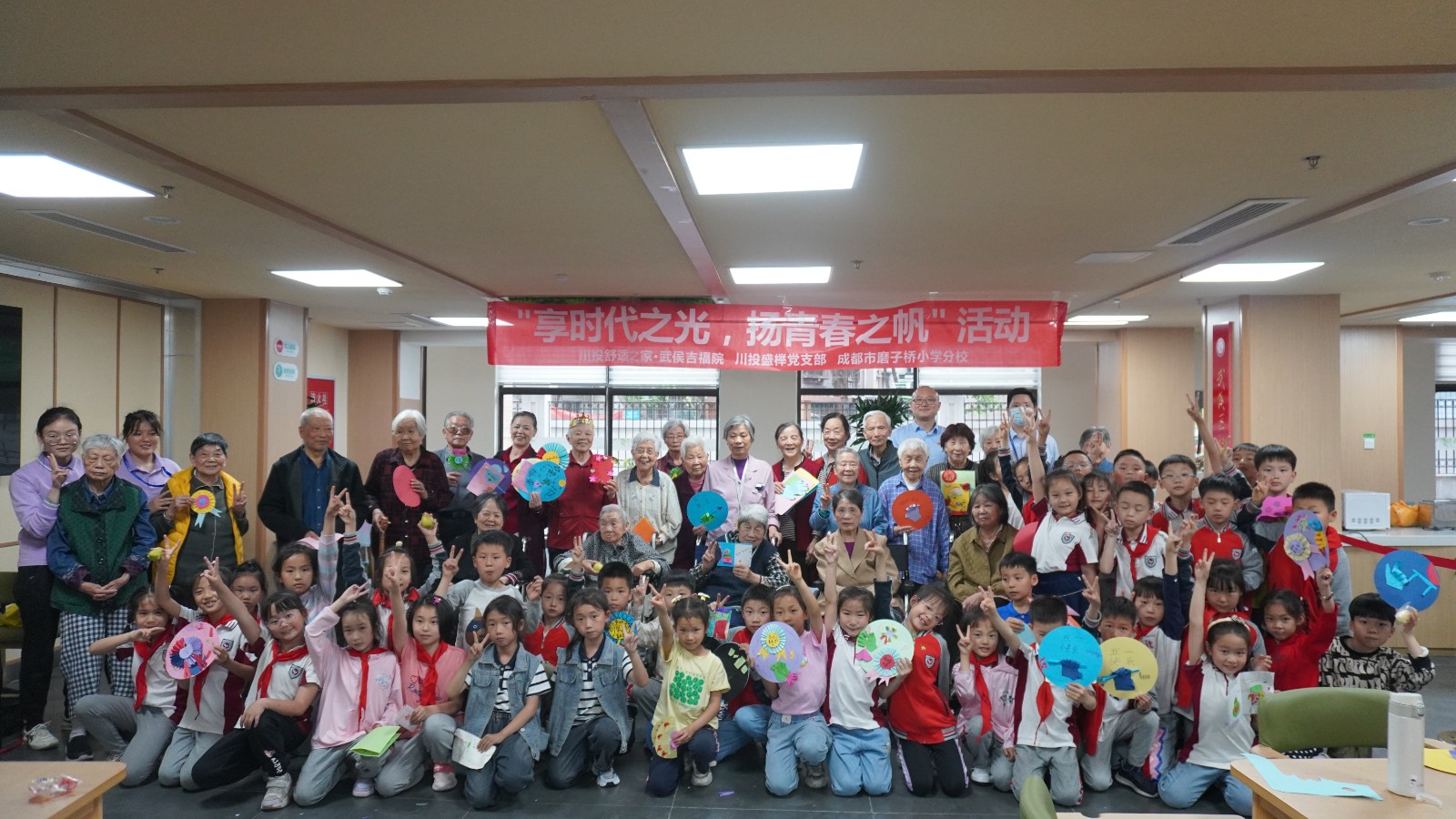 429,川投盛榉公司党支部诚邀成都市磨子桥小学分校在川投舒适之家·武侯吉福院举办“享时代之光,扬青春之帆”劳动节主题活动暨长者生日会