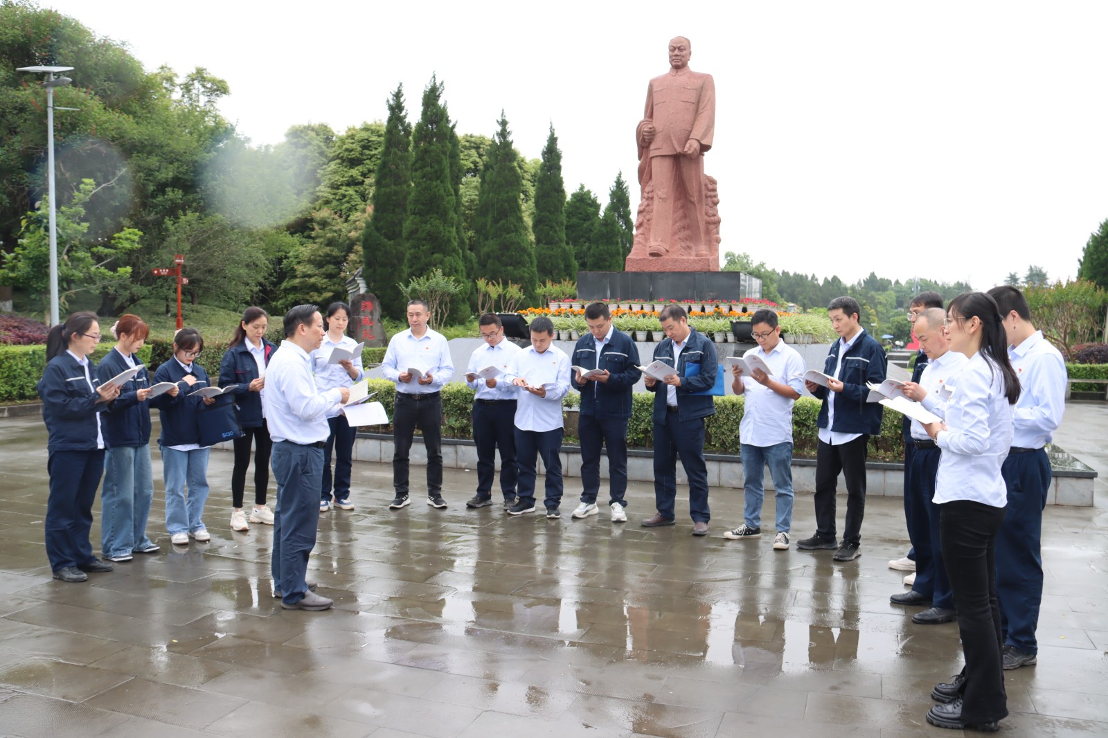 在陈毅元帅雕像前,资阳气电党支部书记、执行董事、总经理梁红兵与党员们一起学习了《中国共产党纪律处分条例》。梁红兵充分肯定此次主题党日活动成果,他表示,在开展党纪学习教育期间,党支部组织党员通过到陈毅故居参观学习,感悟革命先辈严守党纪、廉洁自律的高尚情操,有助于帮助大家进一步提升学条例、守纪律、争做合格党员的自觉性。接下来的工作生活中,大家要积极学习、执行纪律,做到明底线、知敬畏,更好地为公司高质量发展过程发挥党员先锋模范带头作用。