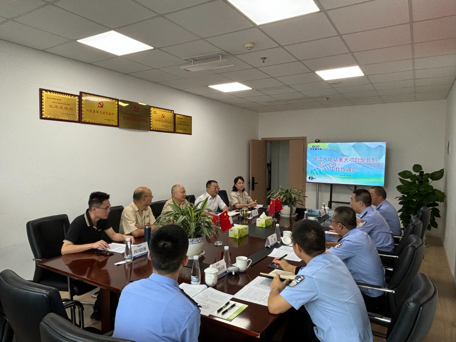 为保障银江水电站重大项目安全顺利推进,护航服务攀枝花市高质量发展建设共同富裕试验区,攀枝花市公安局与川投能源下属攀水电公司建立了银江水电站“重大项目警长制”,近日,市公安局机关党委副书记张征带队赴公司召开工作协调会议。攀水电公司党总支副书记、总经理、联络工作组组长吴巍屿出席会议,交警支队办公室、秩序科、三大队及公司相关部门等10余人参加会议。