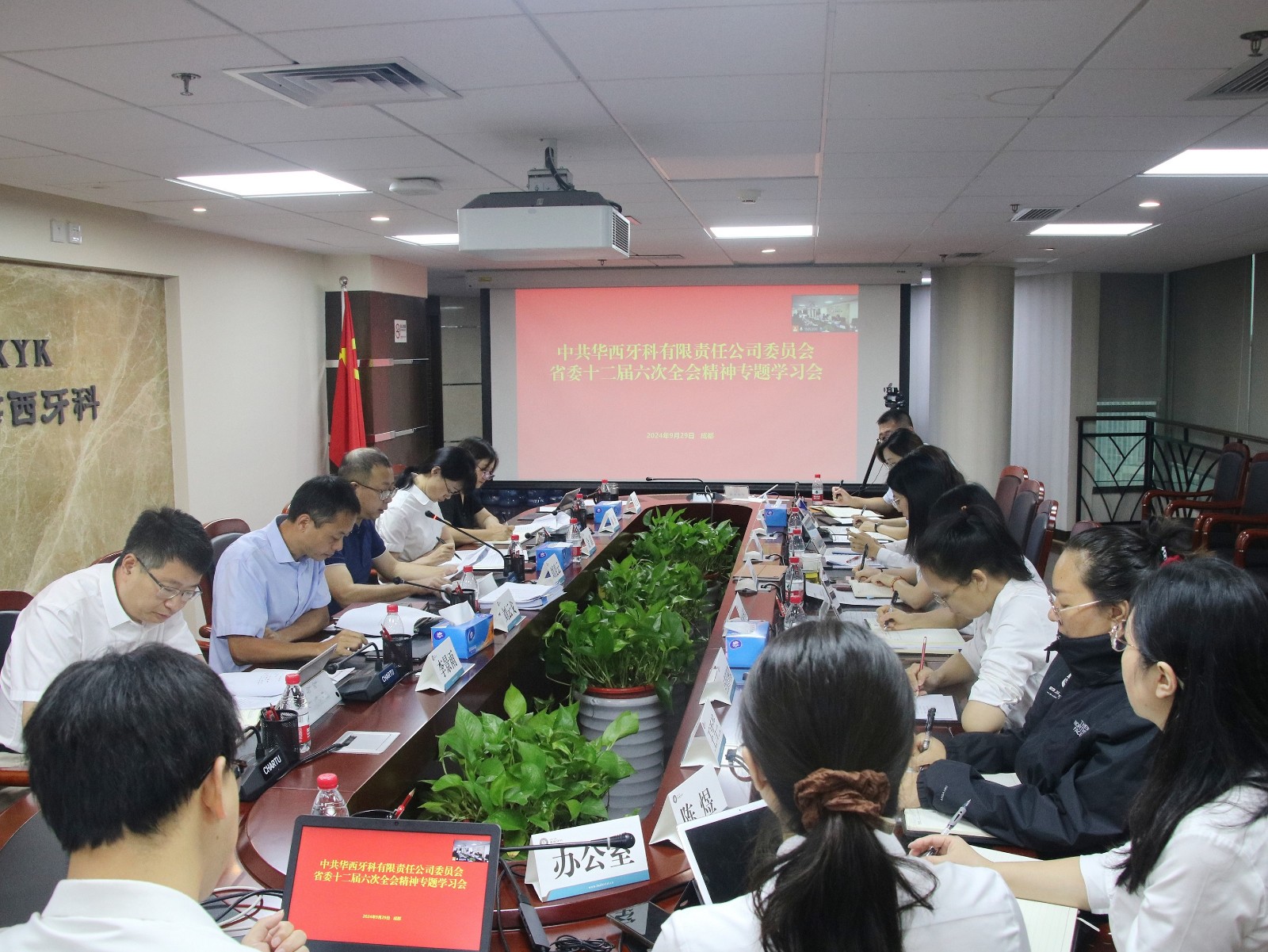 9月29日上午,华西牙科党委召开会议,专题传达学习省委十二届六次全会精神,研究具体贯彻落实举措。华西牙科党委书记、董事长、总经理刘凌云主持会议并讲话。