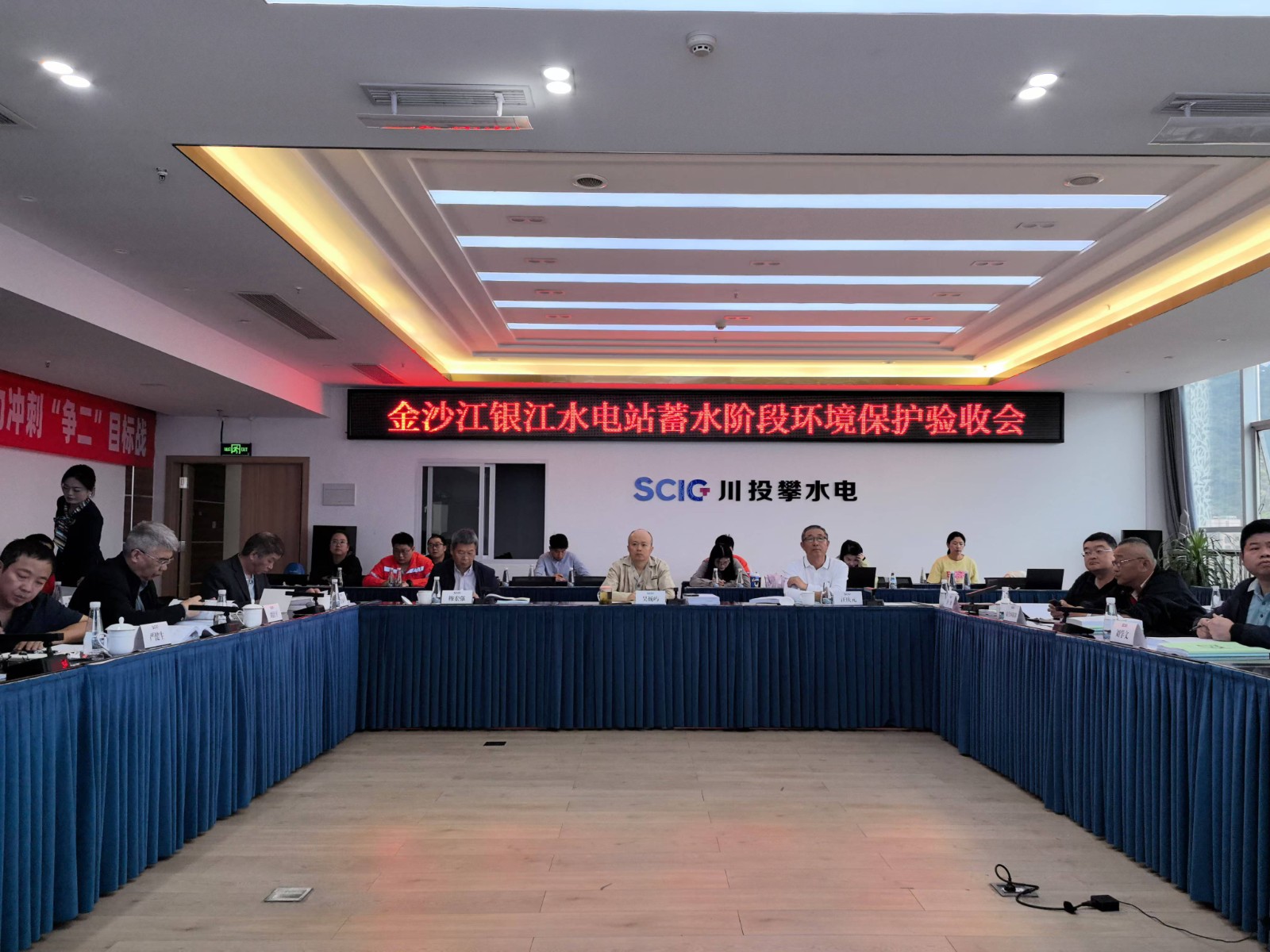 随后,在攀水电公司会议室召开了金沙江银江水电站蓄水阶段环境保护验收会议。会议期间,验收组查阅了各单位环境保护相关资料,并听取了建设单位环境保护工作执行情况调查单位环境保护阶段验收调查报告,以及设计环境监理、环境监测、环评、施工等单位环保工作报告,经特邀专家及其他验收成员认真讨论,最终形成了《金沙江银江水电站蓄水阶段环境保护验收意见》。验收组认为金沙江银江水电站在设计和建设过程中,环境保护工作各项手续齐全,按照环境保护“三同时”要求履行环境管理责任,落实了环境影响报告书及其批复文件提出的蓄水阶段环境保护措施和要求,后续生态环境保护工作计划合理,符合蓄水阶段环境保护验收条件验收组一致同意通过金沙江银江水电站蓄水阶段环境保护验收。