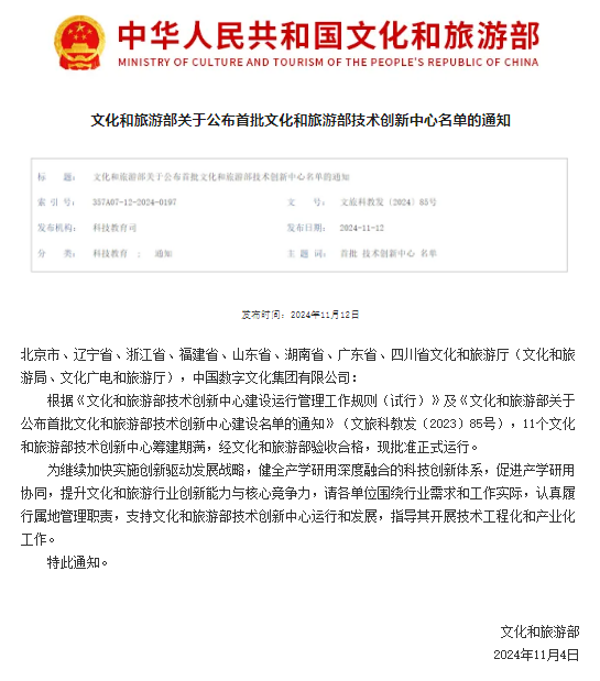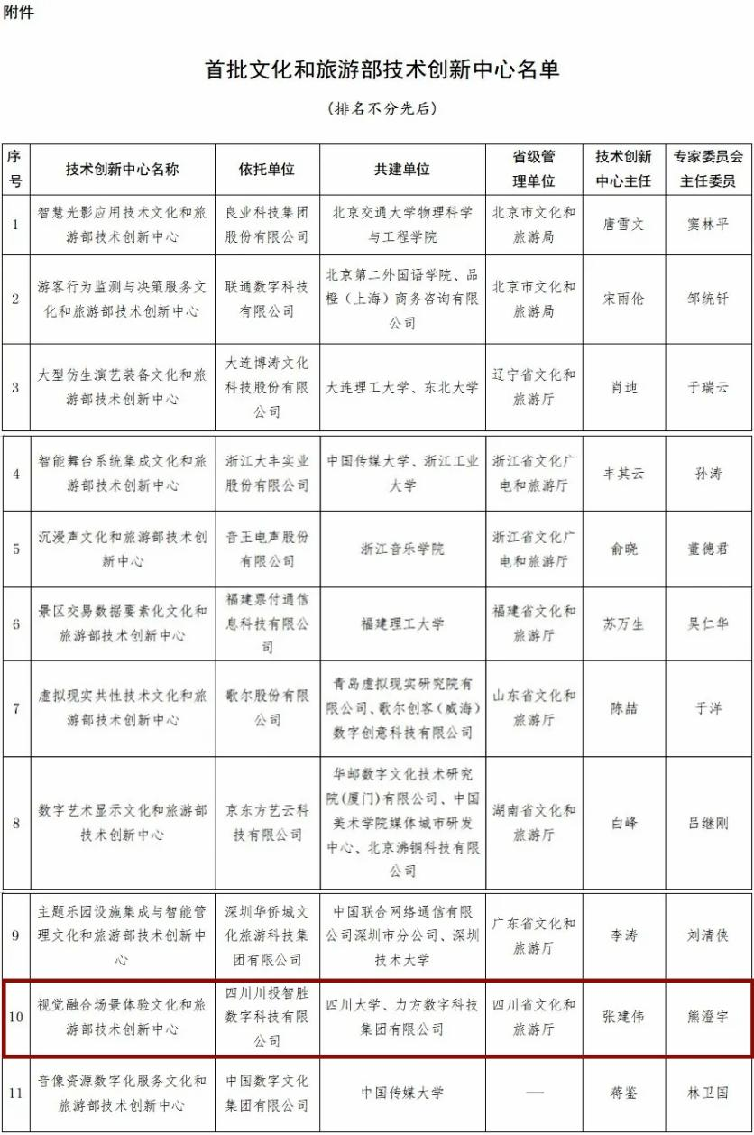 【川投信产】西部唯一!全国首批文化和旅游部技术创新中心名单公布,川投数科榜上有名