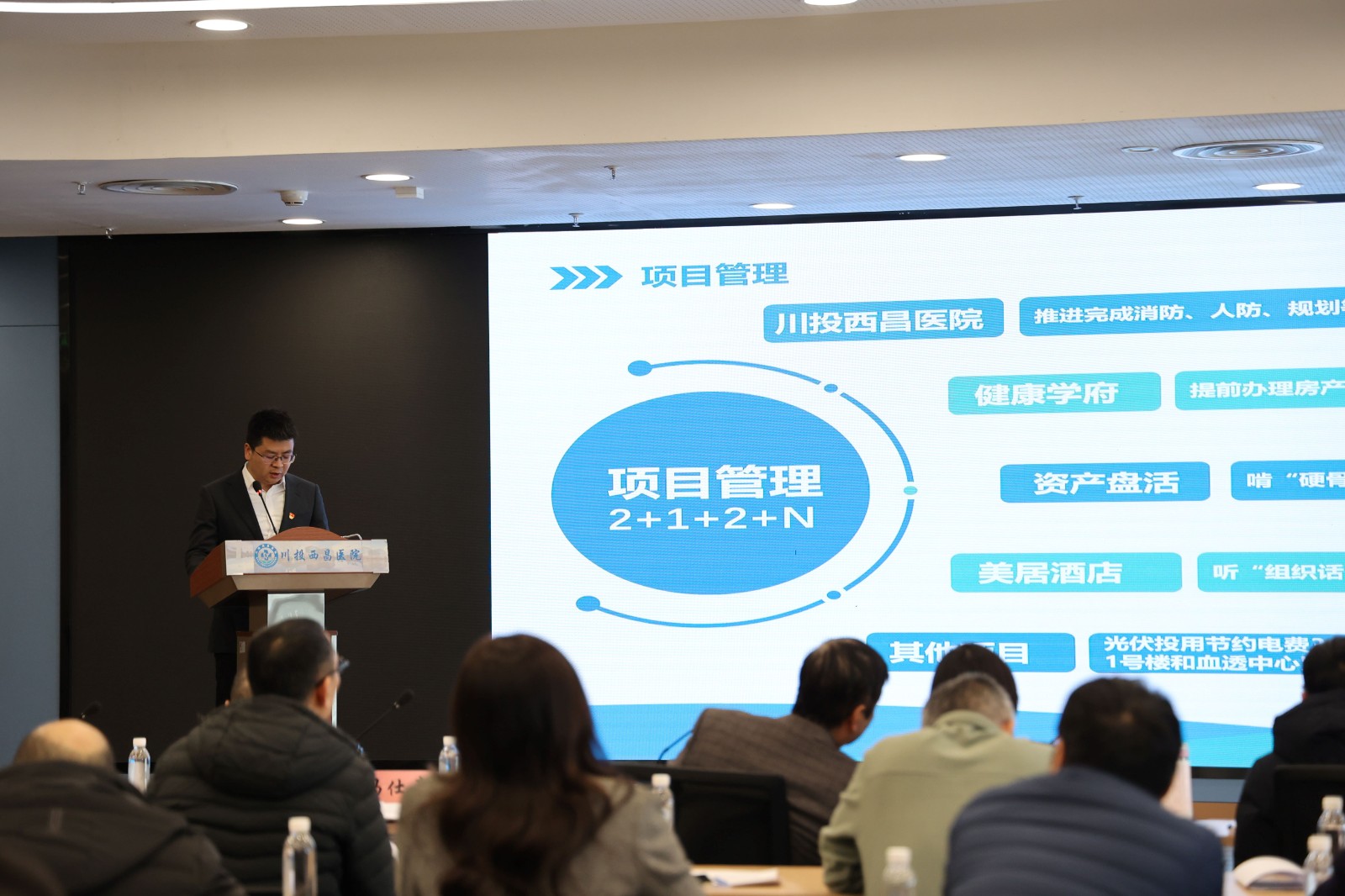 1月14日,川投西昌大健康公司组织召开2024年度中层管理干部考核测评会。公司党委副书记、副总经理、医院院长金鸿主持会议。