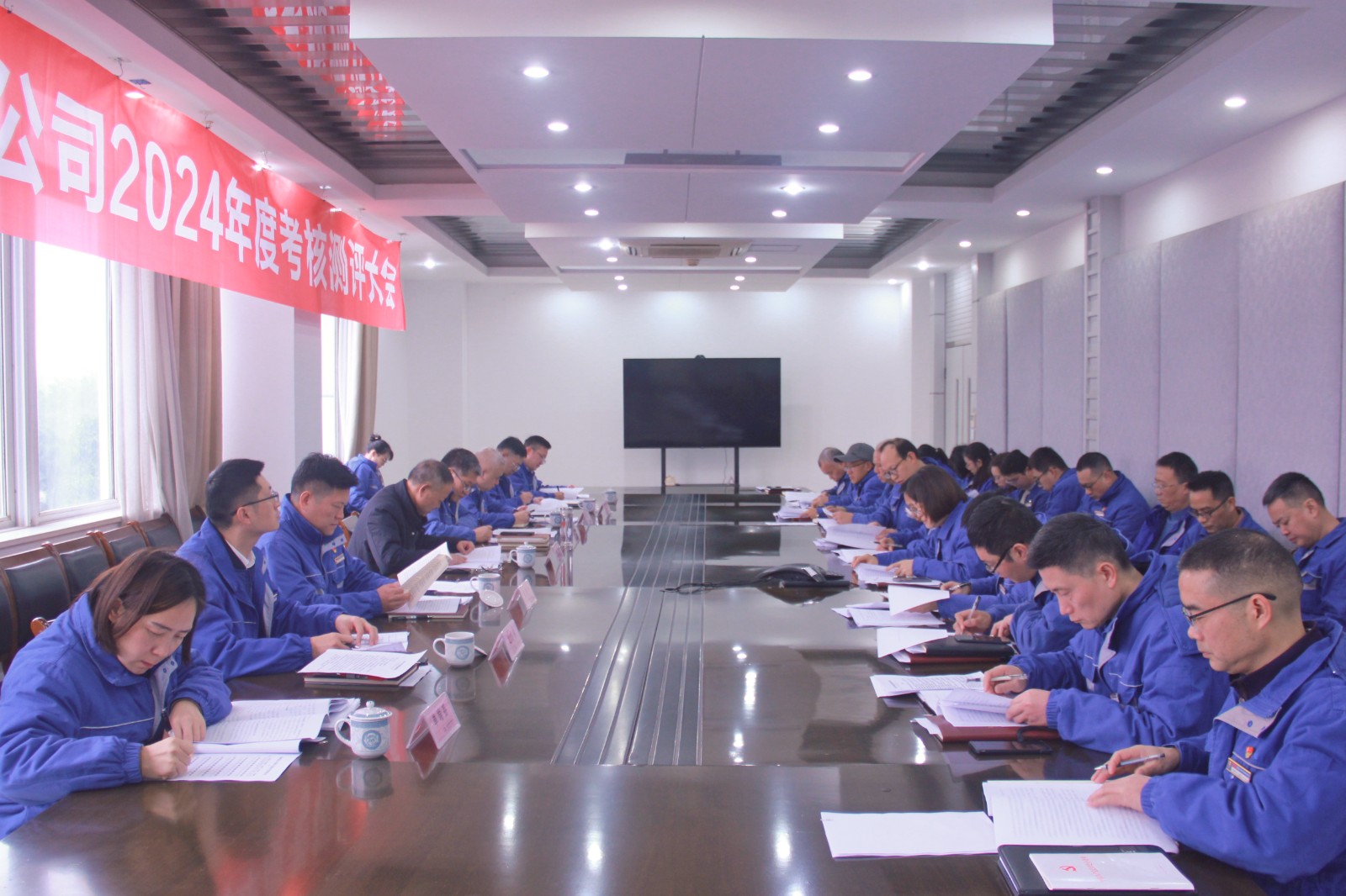 1月16日上午,川南发电公司组织领导班子成员、退休的原公司领导、全体中层管理人员及员工代表对2024年度领导班子、领导人员以及企业领导人员选拔任用工作“一报告两评议”进行考核测评。考核测评会由党委书记、董事长刘胜金主持。