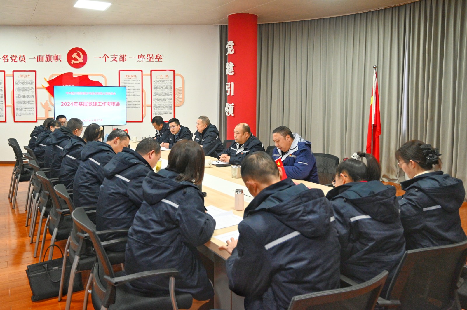 为进一步提升基层党建工作质量,深入落实基层党建标准化建设,以高质量党建引领公司高质量发展,近日,川投能源所属槽渔滩公司党委召开2024年度基层党建工作考核会,会议由公司党委副书记、工会主席陈尧主持,公司考核组成员、各支部书记、支部委员、党员代表等18人参加会议。