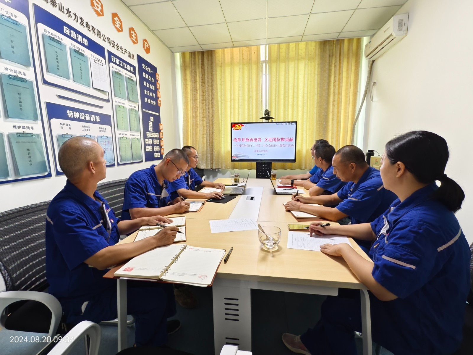 8月20日,高奉山党支部以“改革开放再出发,立足岗位做贡献”为主题开展党日活动,集中学习党的二十届三中全会精神,支部书记、厂长王桥主持并带头谈认识体会。