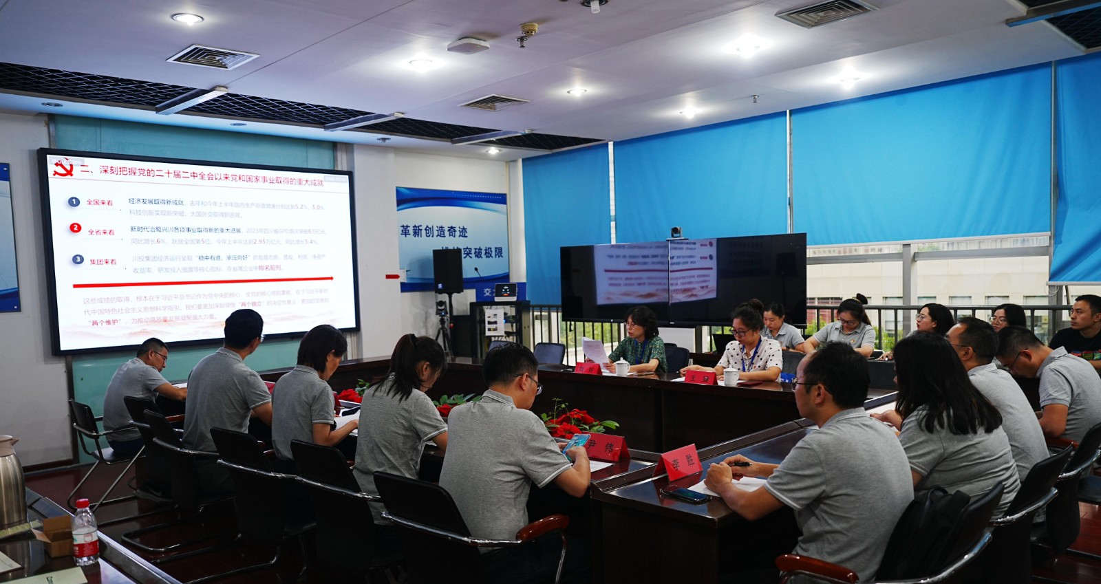 为深入学习贯彻党的二十届三中全会精神,进一步推动全会精神落地落实,9 月 29日,川投能源党委委员、财务总监,交大光芒董事长刘好赴交大光芒专题宣讲全会精神,公司领导班子成员、全体党员参加会议。