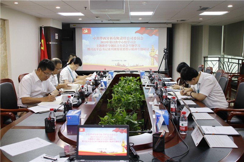 8月17日上午,华西牙科党委召开第12次中心组学习会,组织主题教育专题民主生活会会前学习,专题研讨习近平总书记来川视察重要指示精神。华西牙科党委书记、董事长、总经理刘凌云主持会议并带头谈认识体会,党委副书记、工会主席金晶,副总经理李景雨,党委委员、纪委书记邓云斌出席会议。党委委员、副总经理刘云戈以书面形式参加研讨。