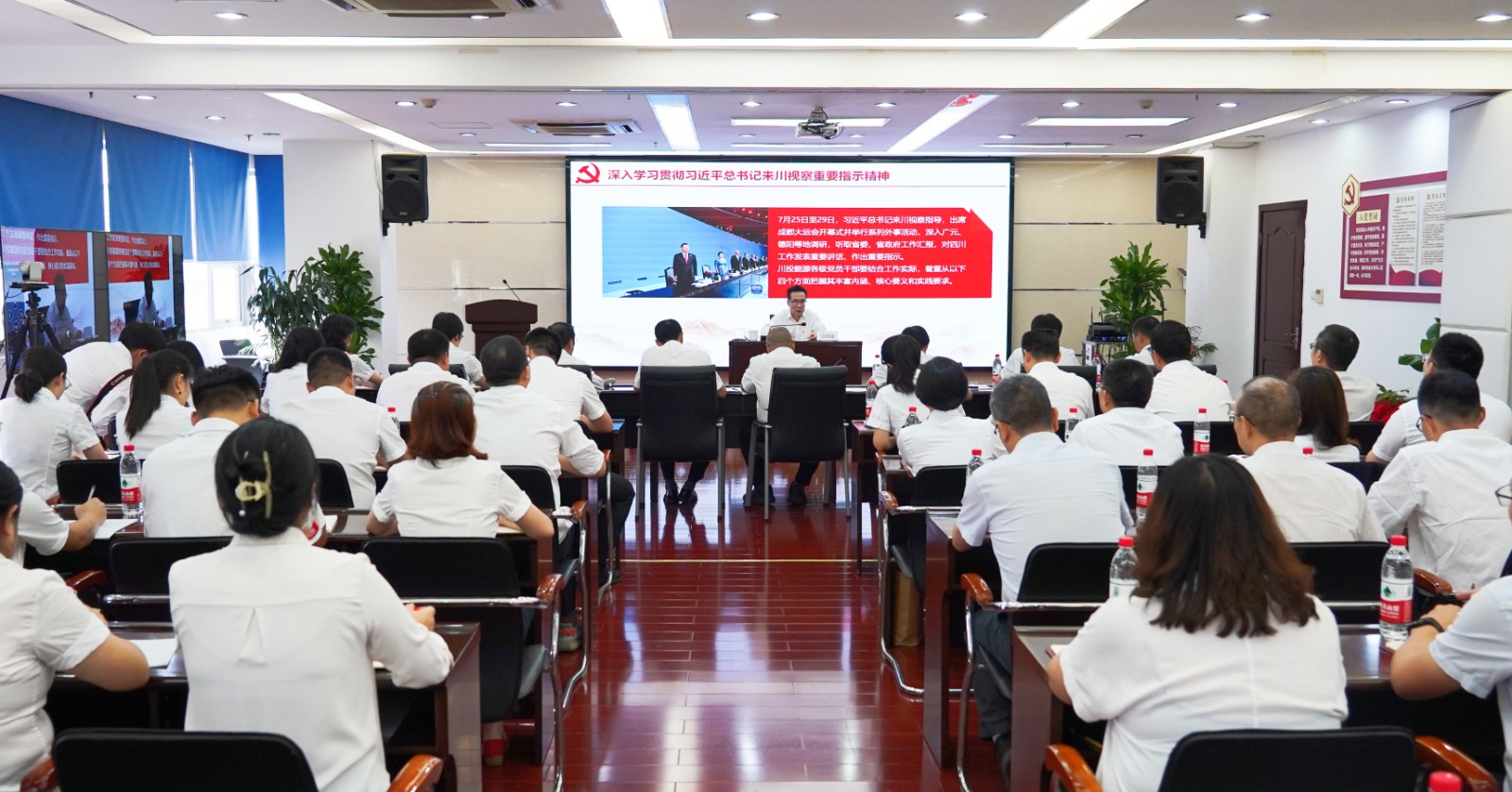 宣讲报告会以“现场 视频”形式召开,川投能源及所属企业领导班子成员、中层以上管理人员、党员代表共计170余人参会。