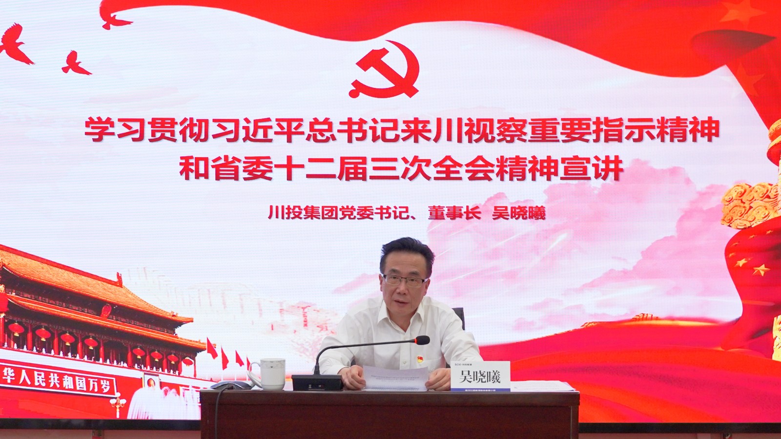 吴晓曦立足当前国情省情,结合川投能源改革发展现状,围绕习近平总书记来川视察重要指示精神和省委十二届三次全会精神,进行了深入阐释和系统解读。