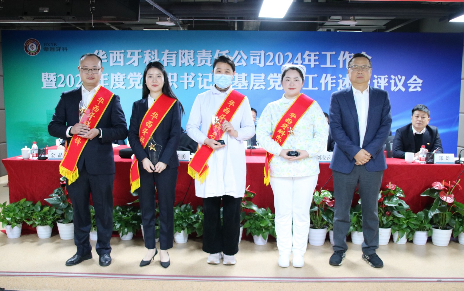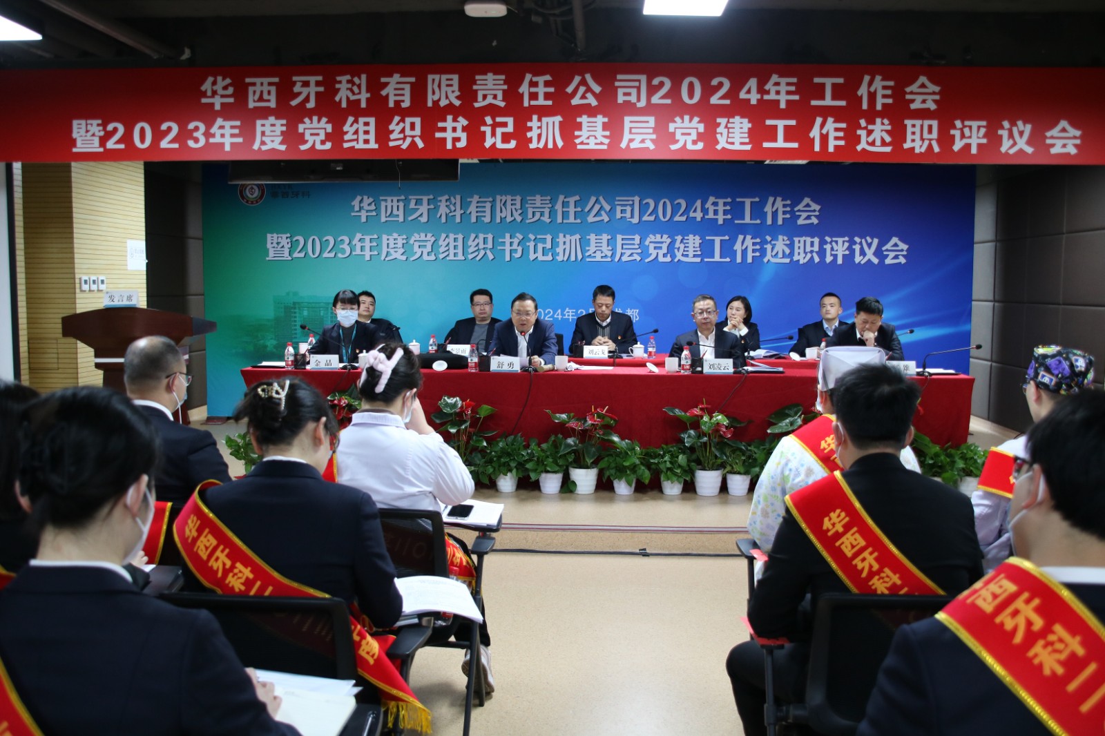 党委组织部副部长、党委党校常务副校长郑雄,华西牙科本部全体员工、各子公司党总支(党支部)书记、班子成员、中层管理人员、党员代表、职工代表以及受表彰的先进个人,各子公司中层副职以上人员通过现场+视频方式参加会议。